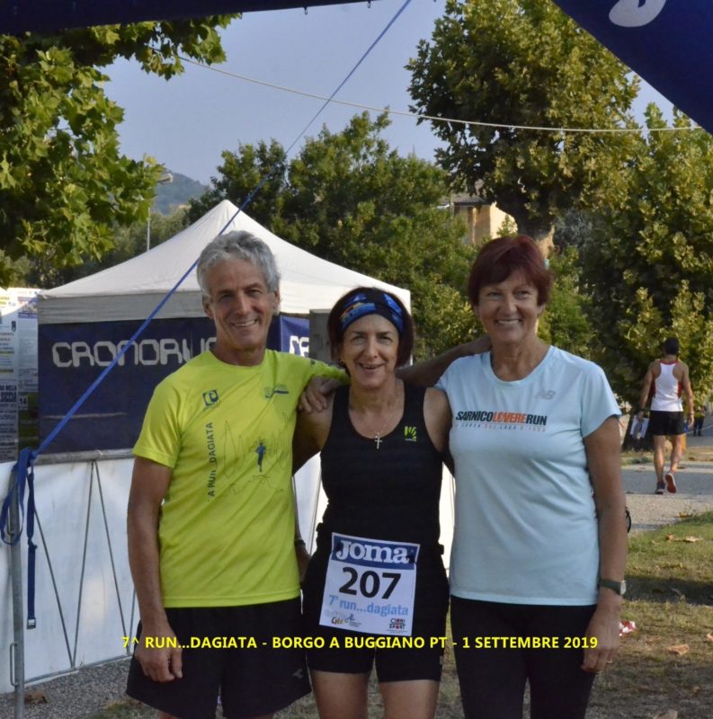 Domenica 1° settembre tre atleti erano invece a Borgo a Buggiano (PT) per la 7a Run…dagiata, gara su strada della lunghezza di km 13,500. Daniele si è piazzato al 3° posto nella cat. Oro Masch. con il tempo di 1.13.50; nella cat. Argento Femm. Giuliana Pennacchi al 2° posto con il tempo di 1.31.15 e Lucia Chiappa al 3° posto con il crono di 1.32.48.