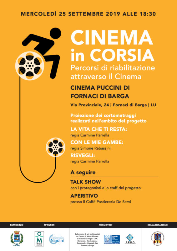 Verranno nell’occasione proiettati i cortometraggi realizzato nell’ambito del progetto: “La vita che ti resta” regia di Carmine Parrella; “Con le mie gambe” regia di Simone Rabassini; “Risvegli” regia di Carmine Parrella. A seguire un talk show con i protagonisti e lo staff del progetto.