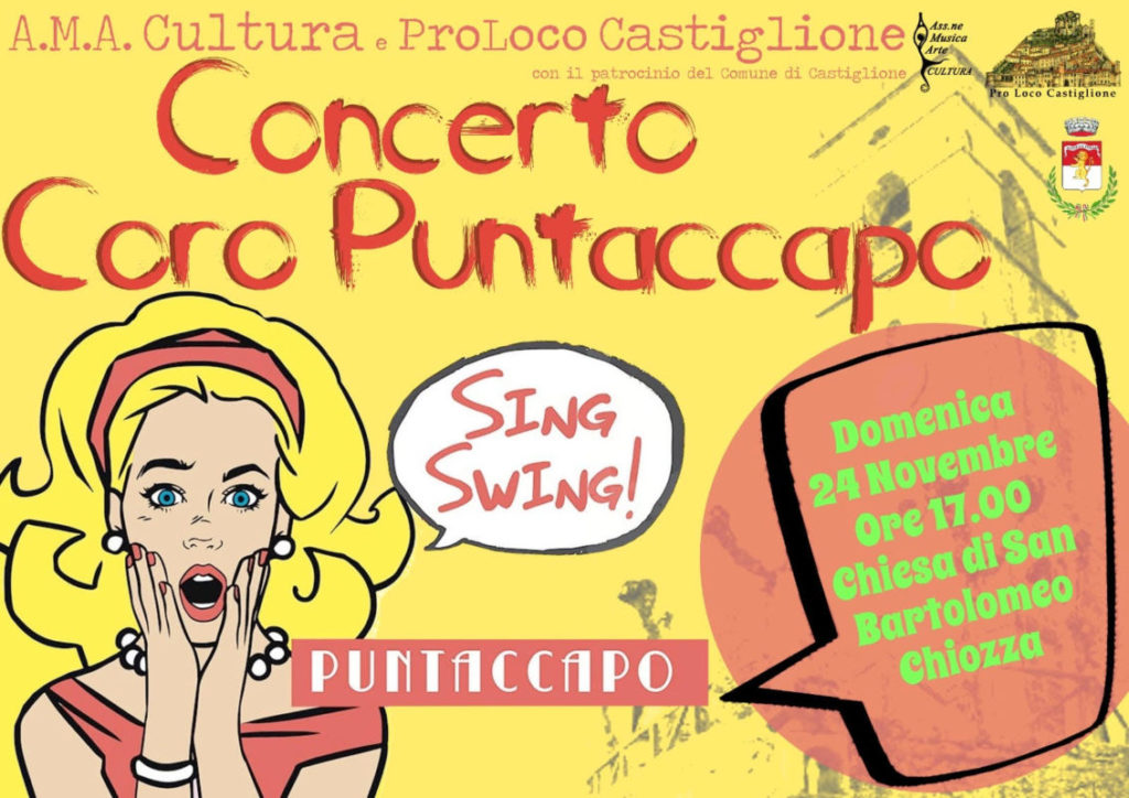 L’evento vedrà come protagonista il coro “Puntaccapo” diretto dal maestro Guido Masini che eseguirà un repertorio allegro… l’ideale per contrastare il grigiore di queste giornate di novembre.