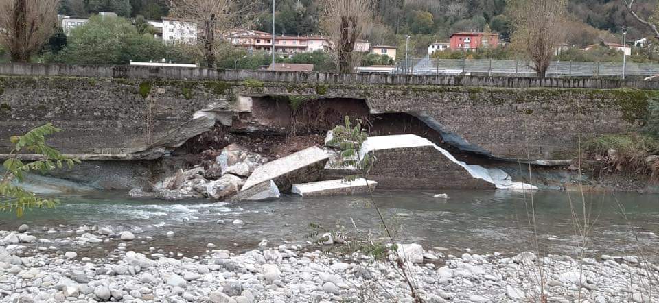 CASTELNUOVO – Smottamento sotto piazzale don Rossi, il parcheggio degli impianti sportivi a Castelnuovo. Un tratto del muro di contenimento si è staccato finendo nel fiume.
