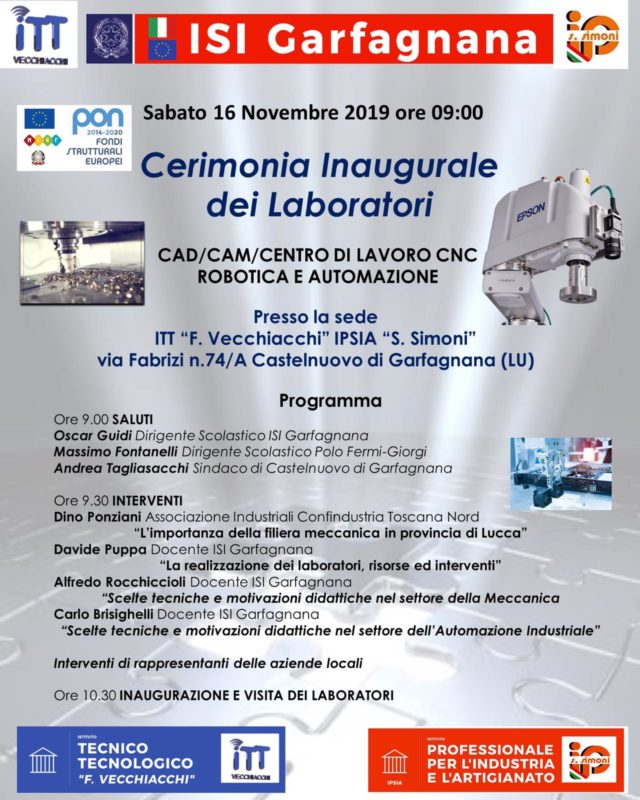 CASTELNUOVO DI GARFAGNANA – Importante mattinata quella di sabato 16 novembre per l’ITT Vecchiacchi e l’ IPSIA Simoni, le due scuole dell’ISI Garfagnana all’avanguardia per la realizzazione di spazi laboratoriali volti a favorire una didattica innovativa ed al passo con i tempi.