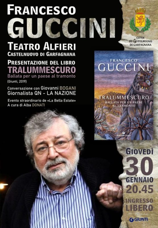 CASTELNUOVO GARFAGNANA – Appuntamento culturale di rilievo giovedì sera alle ore 20,45 al teatro Alfieri. Francesco Guccini, il noto cantautore emiliano, presenterà infatti il suo ultimo libro ” Tralummescuro – ballata per un paese al tramonto.