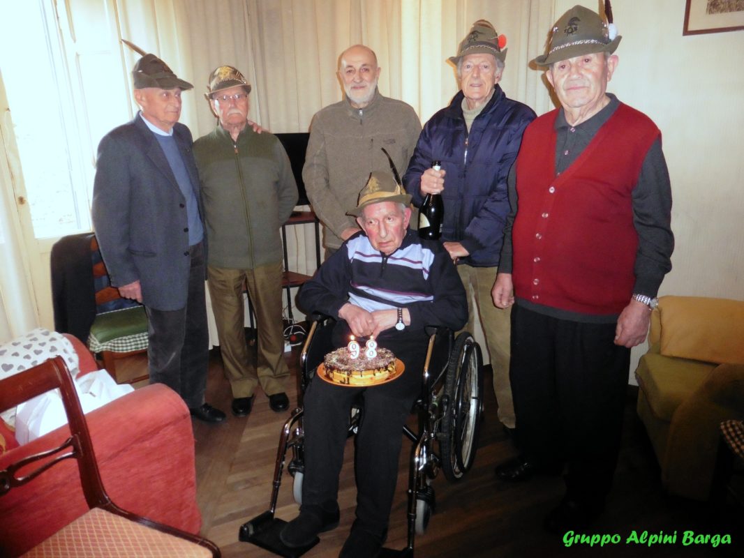 Certo è che in tanti anni ha saputo dare molto a Barga anche in altri e diversi campi della vita sociale e ieri 8 febbraio 2020, una storica e importante realtà di Barga di cui Antonio ne è stato il segretario e ancora un importante iscritto, il Gruppo Alpini di Barga, come già in altre simili occasioni, con dei suoi rappresentanti, ha voluto recarsi alla sua casa per festeggiare con lui il bel traguardo dei 98 anni. Non un’occasione per i soli auguri ma anche per dimostrargli tutto l’apprezzamento per ciò che ha saputo dare al Gruppo e a Barga con testa e nel caso con il cappello degli alpini.