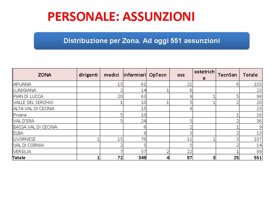 In ALLEGATO il quadro completo delle assunzioni suddivise per zona.