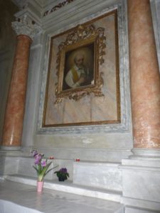 Nel complesso dei tre altari il più vicino al nostro excursus e avvicinabile all’intrapreso discorso parrebbe essere l’altare centrale che cosi Sara Moscardini ci definisce: