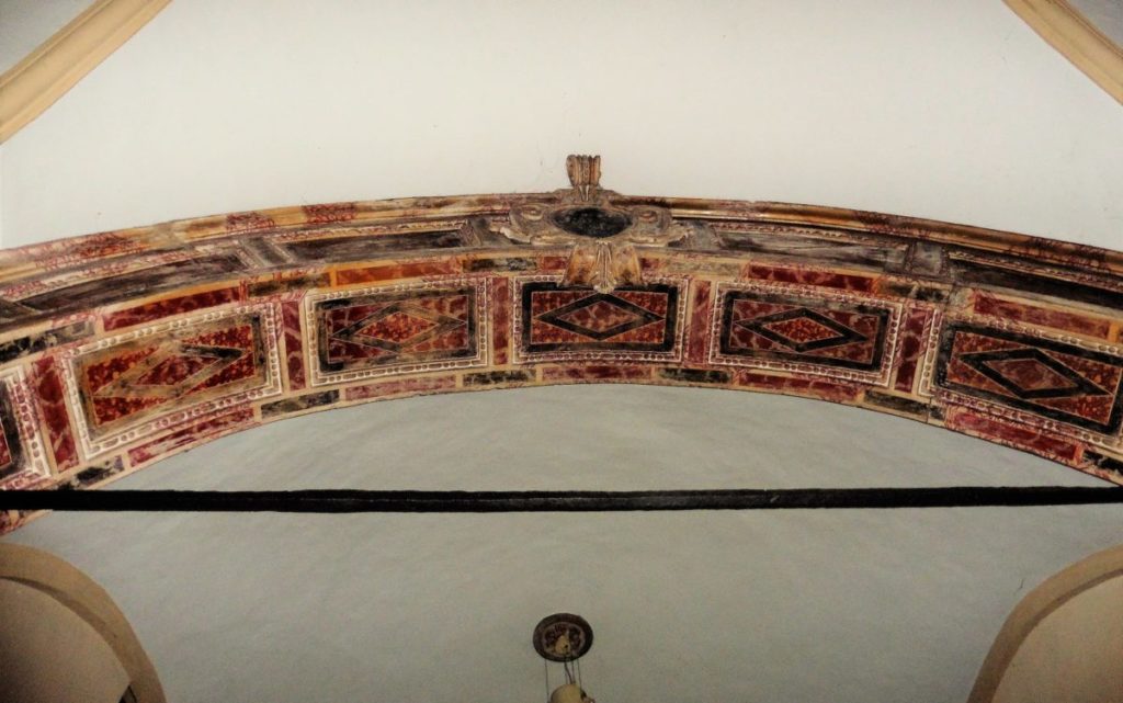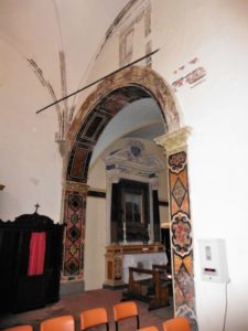 Chiesa di San Francesco: accesso alla cappella della Madonna delle Grazie. Arcata, con altre tracce di scagliola.