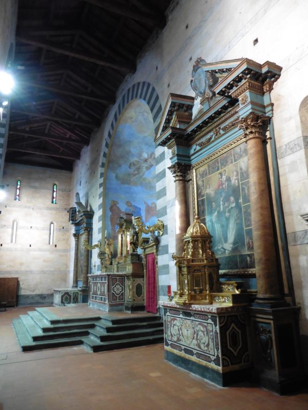 I tre altari con la mensa di scagliola della Pieve di Loppia.