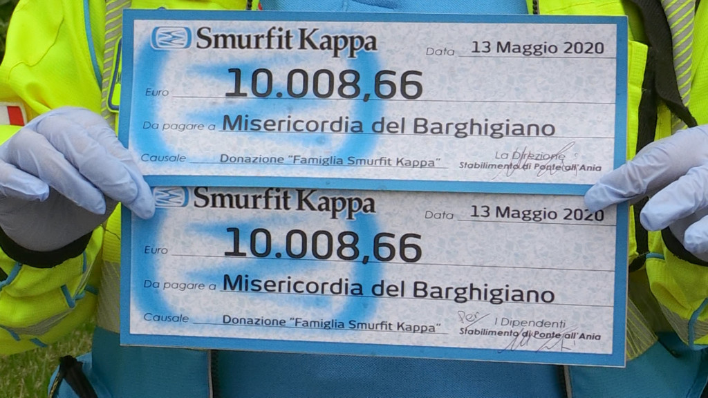 Così la cartiera Smurfit Kappa di Ponte all’Ania nel comune di Barga che ha consegnato due assegni alla governatrice della Misericordia del Barghigiano Carla Andreozzi per mano del direttore dello stabilimento, Massimiliano Listi.