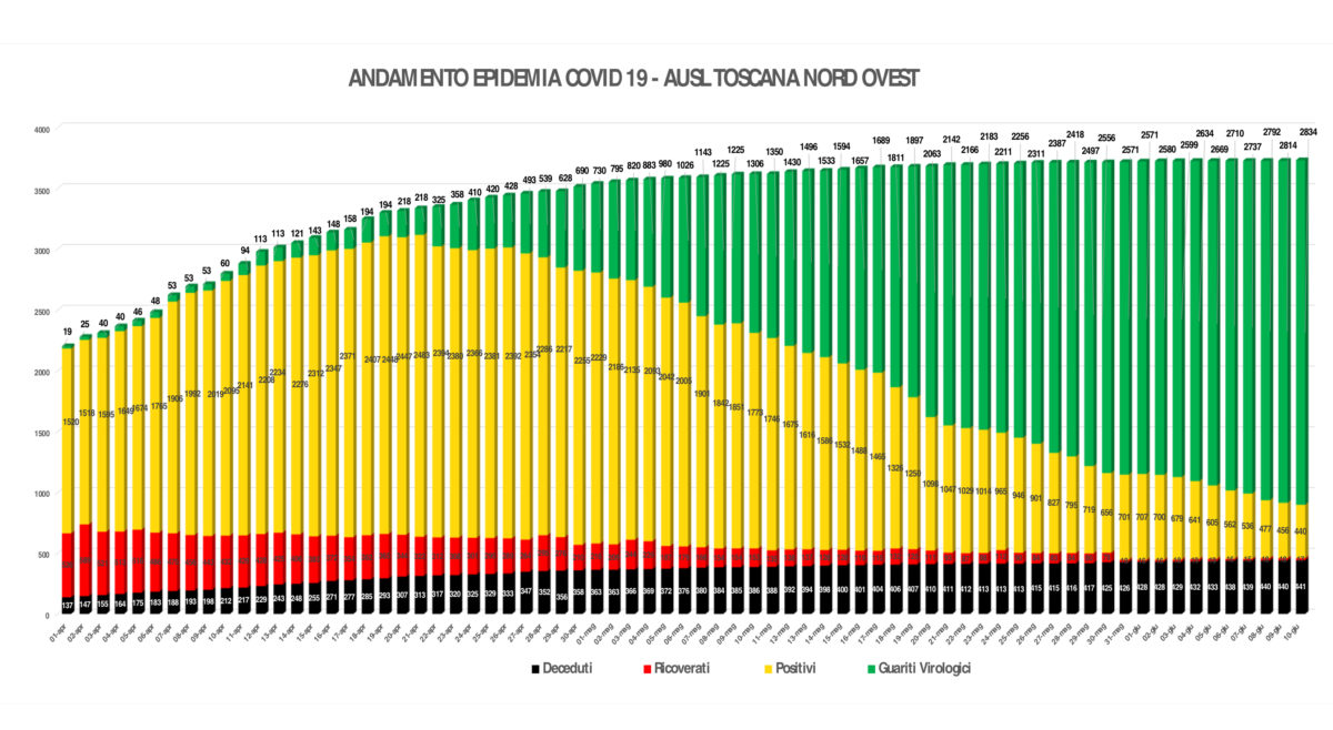 L’azienda sanitaria ha inviato come la scopra settimana l’aggiornamento settimanale sui casi di Coronavirus “Covid-19” sul territorio dell’Azienda USL Toscana nord ovest.