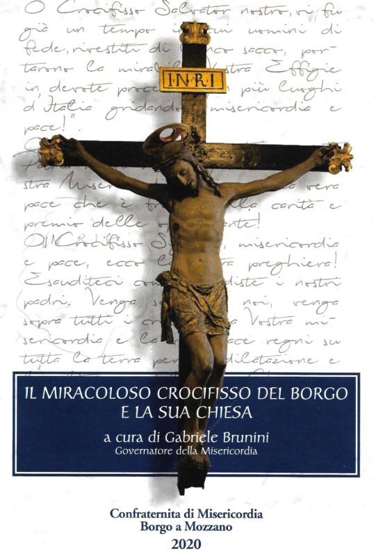 BORGO A MOZZANO – Verrà presentato a Borgo a Mozzano domenica prossima 12 luglio alle 18.30 il volume “Il miracoloso Crocifisso del Borgo e la sua chiesa”, scritto nel corso del lungo lockdown da Gabriele Brunini governatore della locale confraternita di Misericordia. La presentazione avrà luogo nella insolita location di via Roma, proprio davanti alla chiesa che è oggetto della pubblicazione e che custodisce il simulacro ligneo di Gesù Crocifisso, antico di oltre sei secoli, che i borghigiano hanno sempre venerato e ritenuto miracoloso. Corredato da un ricchissimo album di foto “storiche”, il libro ripercorre le pestilenze e le calamità durante le quali le popolazioni del Borgo a Mozzano e dei dintorni ricorsero alla protezione del Crocifisso: come la peste del 1630, il tifo petecchiale del 1817, il colera del 1855, il terremoto del 1920 o il passaggio del fronte nell’ultimo conflitto mondiale. Brunini apre la sua pubblicazione con l’immagine di Papa Francesco in preghiera solitaria davanti al miracoloso Crocifisso romano di S. Marcello al Corso, in piena pandemia da coronavirus, e da quella adorazione stabilisce interessanti paralleli con il Crocifisso borghigiano che, come quello di S. Marcello al Corso, ha visto la iniziale presenza in un oratorio tenuto dai Servi di Maria.