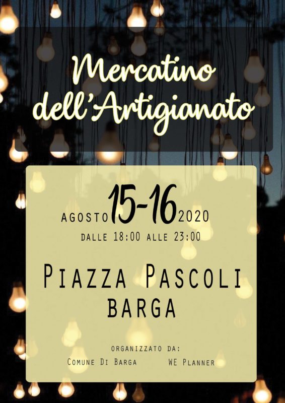 A completare l’offerta della fiera invece anche una speciale edizione del Mercatino dell’Artigianato che sabato 15 e domenica 16 agosto si terrà dalle 18 alle 23 in piazza Pascoli. Sarano presenti una decina di banchi. Il tutto organizzato da We Planner e comune di Barga. Per il giorno di Ferragosto Piazza Pascoli vi aspetta di sera anche con un po’ di musica di intrattenimento live.