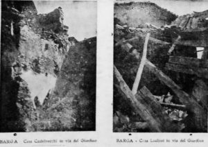 Intanto il Comune di Barga sta approntando un Comitato di Soccorso che sproni le associazioni politiche, economiche e di mutuo soccorso e che si faccia intendere circa Barga che al momento è dimenticata. Ogni tanto però si ode un tonfo di mura che cadono sotto i colpi di piccone degli operai del Genio Civile, che hanno assoldato i pompieri di Lucca e di Bologna e vari soldati, il tutto sotto la direzione del barghigiano d’adozione ing. Olivieri.