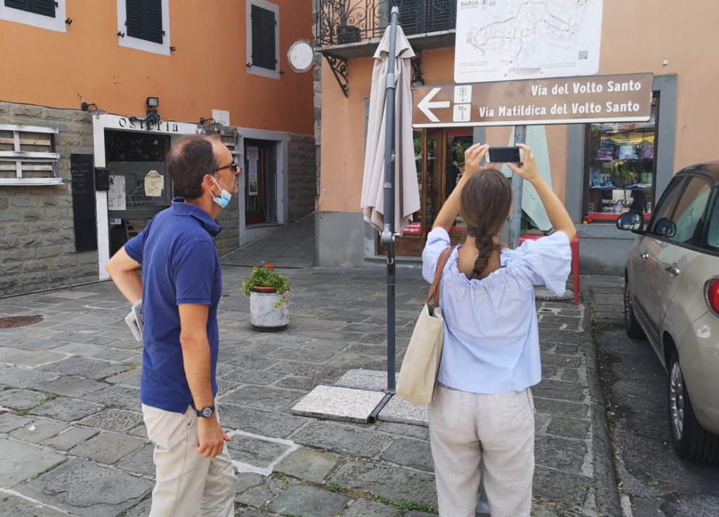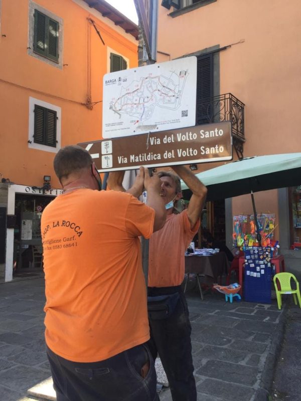 “Il progetto via del Volto Santo ha visto l’assegnazione di un importante finanziamento destinato all’unione dei comuni della Media Valle del Serchio, su bando GAL, che assieme alla compartecipazione dei comuni attraversati dal tratto arriva ad 80mila euro – dicono Francesca Romagnoli in qualità però di responsabile del progetto Via del Volto Santo per l’Unione dei Comuni Media Valle ed il sidnaco di Pescaglia il Sindaco Andrea Bonfanti , on delega al turismo per l’Unione – In questo anno nell’ambito del finanziamento concesso, si è lavorato alle gare d’appalto per l’installazione della segnaletica, della pulizia del tratto, per il decespugliamento e taglio d’erba, oltre che per la grafica dei cartelli informativi. Ad aggiudicarsi questo intervento è stata la Soc. Coop La Rocca che ha già provveduto alla pulizia dei sentieri ed ora sta posizionando la segnaletica consistente in paline e cartelli in legno, nei tratti già interessati dalla sentieristica, come impone la normativa e cartelli invece in allumino nei tratti stradali”.