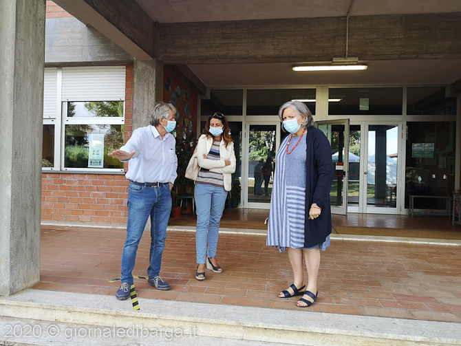 BARGA – La sindaca Caterina Campani e l’assessore alla scuola Lorenzo Tonini, hanno effettuato stamani un sopralluogo presso la primaria, per verificare lo stato di avanzamento degli interventi per consentire il ritorno nelle scuole dell’istituto comprensivo di Barga di quasi 800 bambini e ragazzi, dalle materne alla media, nel rispetto delle normative anticovid. Uno dei tanti sopralluoghi di queste settimane nell’ambito dell’impegno che vede coinvolti in sinergia ente pubblico e scuola per consentire un ritorno a scuola per tutti.