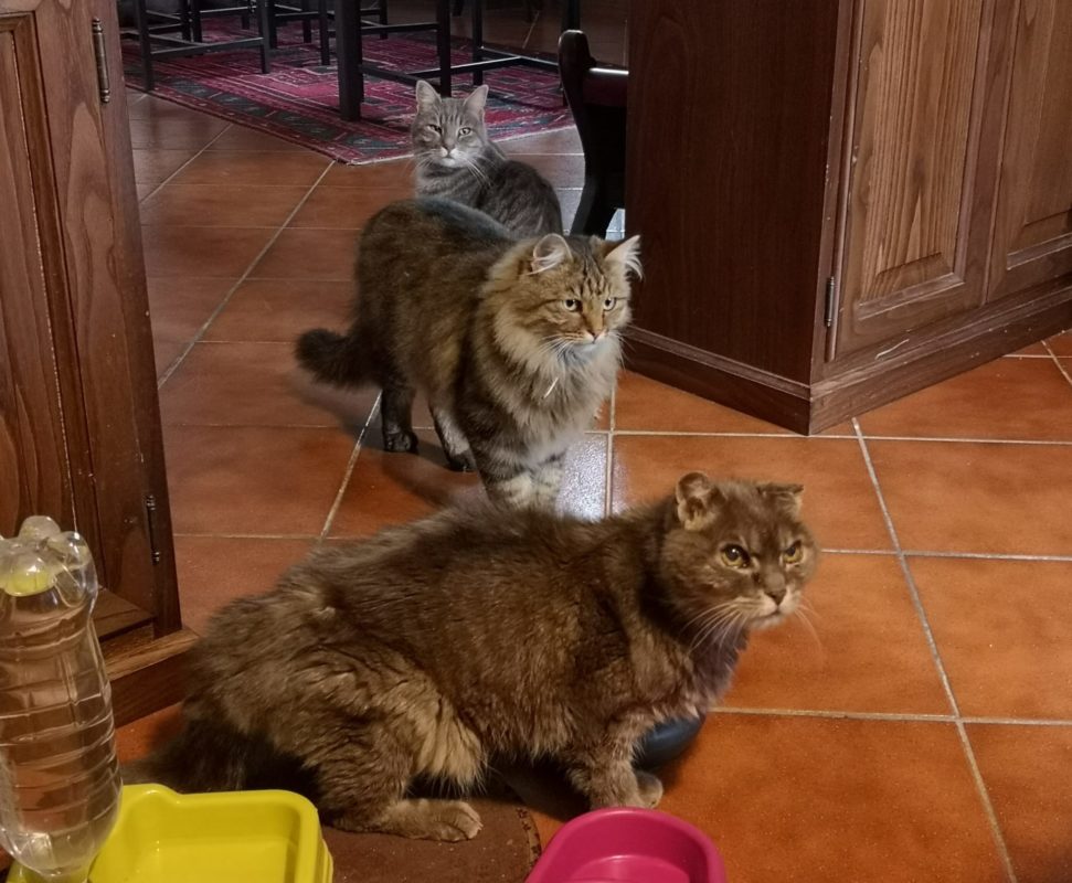 I gatti, dopo il rifiuto del tampone, si sono accontentati della pasticca antipulci e antizecche che hanno però preteso di mangiare con un “rinforzo” di cibogatto.