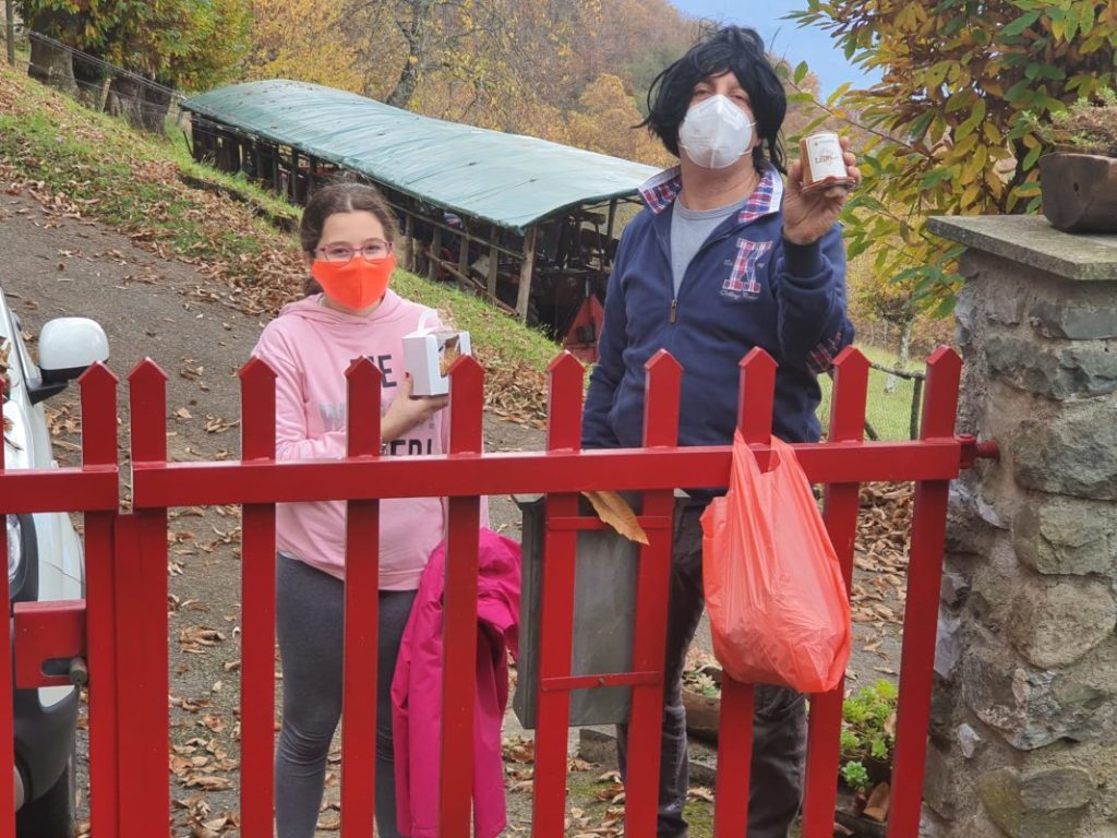 Li ha preparati con le sue mani la giovanissima Emilia che ce li ha anche confezionati davvero con grande maestria e ci ha fatto proprio una gradita sorpresa.. Non so perché il babbo Leo l’abbia accompagnata a portarceli con una parrucca di riccioli neri in testa. Forse un omaggio alla mia folta capigliatura?!