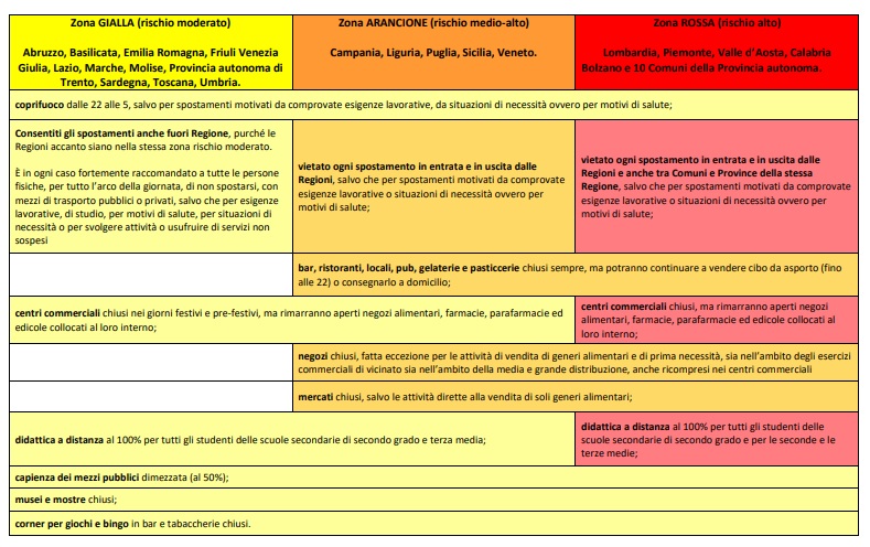 Le misure per questo livello sono quelle dunque già annunciate da Conte nei giorni scorsi: