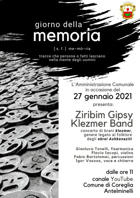 A partire dalle 11, quindi, la Ziribim Gipsy Klezmer Band proporrà una serie di brani klezmer, genere legato al folklore degli ebrei Ashkenaziti, molto presenti in Europa orientale e in particolare sul territorio polacco, tra le principali vittime delle persecuzioni nazi-fasciste culminate con la Shoah. La band è composta da Gianluca Tonelli alla fisarmonica, Flavio Iacopi al violino, Fabio Bartolomei alle percussioni e Igor Vazzaz alla voce e alla chitarra.
