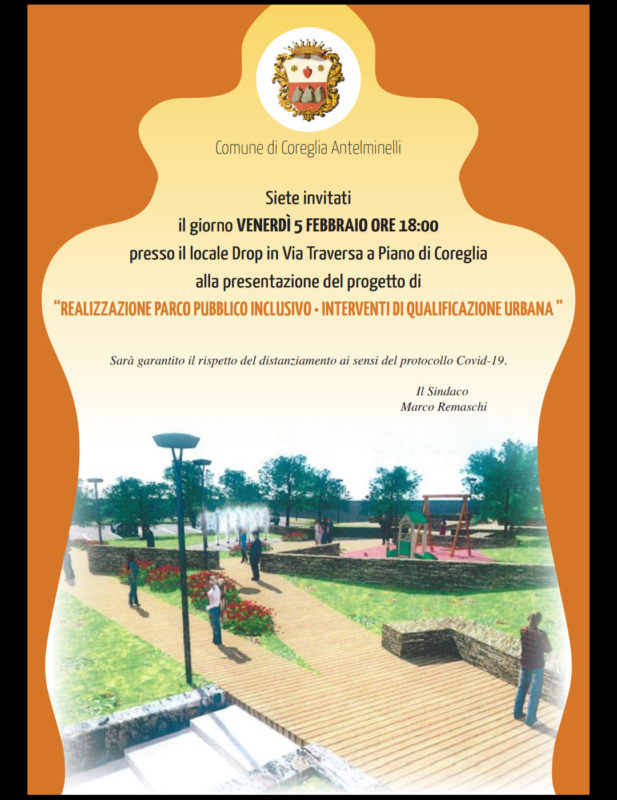 Un nuovo parco per Piano di Coreglia: l’amministrazione Remaschi presenta il progetto alla cittadinanza. L’appuntamento è per oggi, venerdì 5 febbraio, alle 18 alla discoteca Drop di Piano di Coreglia (via Traversa). Nell’occasione il sindaco, Marco Remaschi, l’assessora alla pianificazione del territorio, Barbara Gonnella, i consiglieri comunali e i progettisti illustreranno ai cittadini della frazione il nuovo parco che sorgerà proprio a Piano di Coreglia. Un parco inclusivo, a misura di tutti, pensato per riqualificare il territorio e offrire alla comunità nuovi spazi di socializzazione, di svago, di aggregazione. “Con la presentazione di domani – commenta il sindaco Remaschi – proseguiamo sulla strada della partecipazione, con l’obiettivo di coinvolgere la cittadinanza nel piano di rinascita del nostro territorio. Durante l’incontro raccoglieremo anche idee e proposte da parte dei cittadini. La riqualificazione di questa porzione di Piano di Coreglia, che si unisce anche all’interno su piazza delle Botteghe fino alla creazione di nuovi posti auto, si inserisce in quel percorso di rigenerazione urbanistica e territoriale che interesserà tutte le frazioni del comune”.