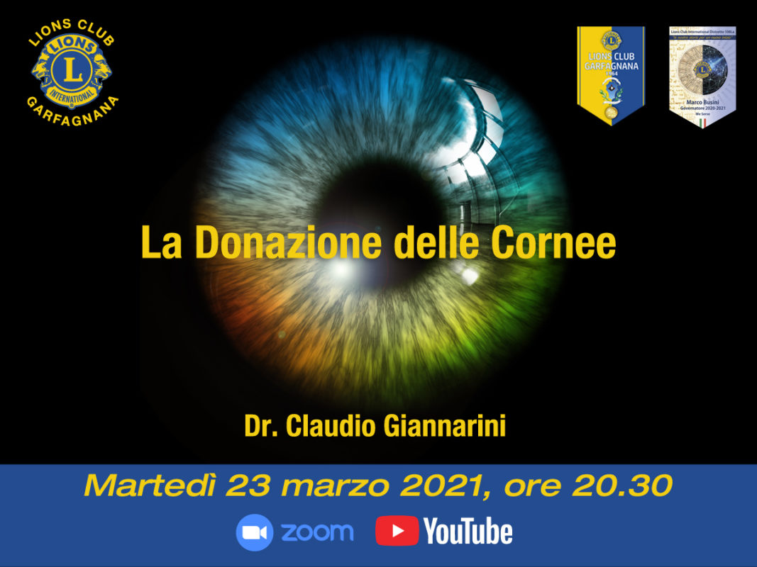GARFAGNANA – Ieri sera martedì 23 marzo si è tenuto il terzo appuntamento dei webinar programmati dal Lions Club Garfagnana. Il titolo era “Da me a te. Per me chiedo solo silenzio. La donazione delle cornee.” Relatore è stato il Dottore Claudio Giannarini Direttore del Centro conservazione Cornee di Lucca, moderatore il Dottore Giovanni Landucci.