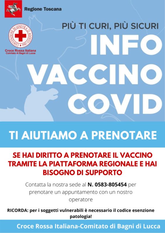 BAGNI DI LUCCA – Per prenotare i vaccini, ci si può fare assistere della Croce Rossa di Bagni di Lucca.