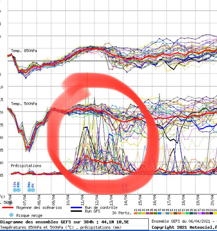 Nella foto in allegato, cerchiate in rosso, vediamo la possibilità di precipitazioni su Barga. Ne parleremo nel nostro articolo in uscita domani mattina.
