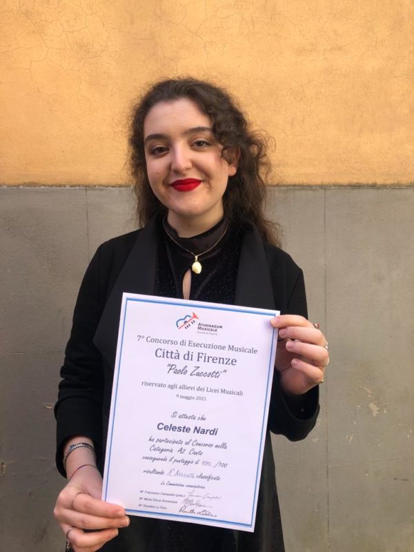 Domenica 9 maggio ha partecipato al VII Concorso musicale Città di Firenze ‘Paolo Zuccotti’ classificandosi al primo posto assoluto; si è inoltre aggiudicata per la sua bravura il Premio Speciale “Lucrezia Balatri” che le è valso una importante borsa di studio. E’ solo l’ultimo degli importanti passi in avanti compiuti da Celeste che in questo periodo è stata solo in parte rallentata dalle difficoltà legate alla pandemia in corso. Prima di tutta la vicenda coronavirus, era il 14 febbraio 2020, Celeste si era infatti classificata al primo posto al IX Concorso nazionale per giovani musicisti Città di Massa. Lo scorso 31 agosto invece aveva partecipato al VI Concorso Lirico Internazionale ‘Voci In-Canto’ a Uzzano (PT), in collaborazione con il Chianni Opera Festival ricevendo il Premio Speciale ‘Miglior under 25 anni’.