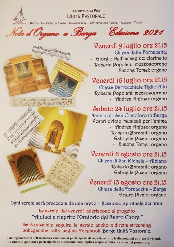 BARGA – L’Unità Pastorale di Barga organizza “Note d’Organo a Barga “ – Edizione 2021.