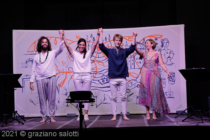 FORNACI – Un debutto indimenticabile quello di Musiche del Mediterraneo, il bellissimo viaggio musicale tra le musiche delle popolazioni che compongono questo mondo unito attorno ad un mare ancora bellissimo. . Un viaggio musicale fra popoli e tradizioni mediterranee, spettacolo di teatro-narrazione scritto da Francesco Tomei e diretto da Stefano Cosimini che ieri sera al pubblici di Fornaci, tra cui anche la sindaca Caterina Campani a salutare il debutto di questa opera, racconta la storia di Manfredi, giovane artista orfano, in viaggio con il nonno verso Istanbul. A cantare in varie lingue le musiche mediterranee è stata la bravissima Burcu Duran accompagnata alla chitarra da Daniele Belli; il tutto si è intrecciato con il racconto dei personaggi ai quali Francesco Tomei ha dato voce. E mentre la storia andava avanti, Lucia Morelli dava vita alla bella scenografia animata che ha regalato a tutti un intenso momento di live painting.