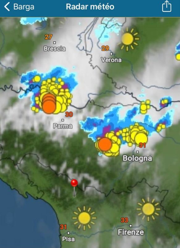 Niente temporali per la giornata di oggi. Due cellule si sono formate in Appennino e stanno scivolando verso l’Adriatico. Appuntamento a domani quando la tendenza temporalesca sarà più marcata rispetto ad oggi.