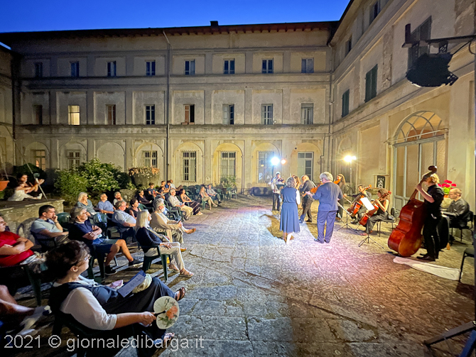 BARGA – E’ partito, con il concerto tenutosi ieri sera nel chiostro del conservatorio di Santa Elisabetta, in una cornice davvero bella, il programma barghigiano del festival Opera Barga 2021. Per il primo appuntamento, uno dei concerti da camera proposti nell’ambito del programma di “Musica nei borghi”, un ospite d’eccezione come Danilo Rossi e la sua viola e con lui anche Simone Bernardini, collaboratore storico del festival nonché uno dei violinisti più stimati in Italia ed Europa. Con loro gli archi dell’Ensemble Le Musiche. E’ stato presentato un repertorio che è iniziato con Tartini – Concerto in Re Magg. per flauto e archi ed è proseguito con Mozart, con la Sinfonia Concertante per violino e viola in Mi bem. Mag. K. 364 .