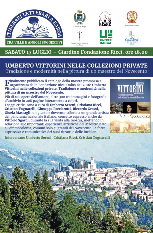 BARGA – “Umberto Vittorini nelle collezioni private. Tradizione e modernità nella pittura di un maestro del Novecento”: ecco il catalogo della mostra. Si presenta sabato 17 luglio alle 18 nel giardino della Fondazione Ricci (via Roma, 20 – Barga – LU), a 4 anni dell’esposizione promossa e organizzata dalla stessa Fondazione nel 2016, grazie al contributo della Fondazione Cassa di Risparmio di Lucca.