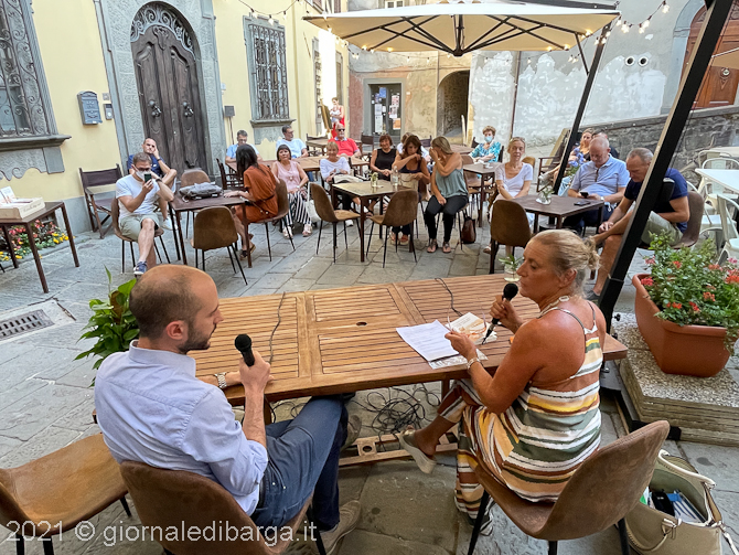 All’ombra di palazzo Mordini, non si è parlato però della storia di questa famiglia, ma dell’interessante romanzo di esordio di Antonio Mordini, dal titolo “Perduta nei miei sogni”. A presentarlo, insieme all’autore, di fronte al locale Wine Not che gestisce insieme a Luigi Marcucci e Giovanni Bonocore, è stato Sonia Ercolini che ha rivolto diverse domande ad Antonio che parla di Jake, giovane di New York e di una misteriosa voce femminile che lo porterà ad innamorarsi perdutamente di una donna. Un romanzo che, soprattutto nella figura del protagonista Jake, ha qualcosa anche di autobiografico visto peraltro che Mordini, classe 1989, si è trasferito per due anni negli “States”, da cui poi è rientrato a Barga.
