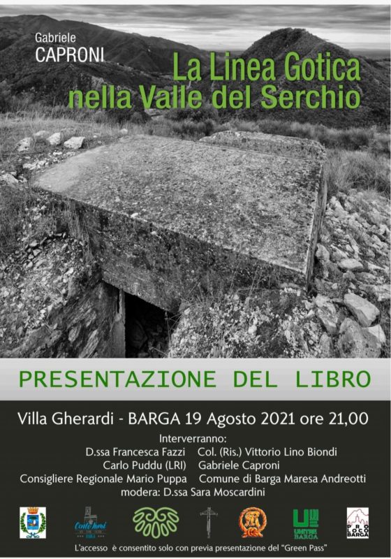 Giovedì 19 agosto alle ore 21.00 presso il giardino di Villa Gherardi a Barga si presenta il volume “La Linea Gotica nella Valle del Serchio” di Gabriele Caproni. L’incontro è programmato nel calendario degli “Itinerari letterari” promossi dal Comune di Barga insieme a Fondazione Ricci, Unitre Barga, Istituto Storico Lucchese sez. Barga, Pro Loco Barga e Cento Lumi.