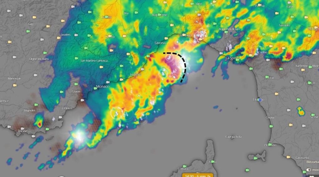 ciò che le carte non riescono a vedere, sicuramente non a due o tre giorni di distanza, ma in questo caso neppure a 12 ore dall’evento, era la formazione di un fronte temporalesco così organizzato sul mar ligure.