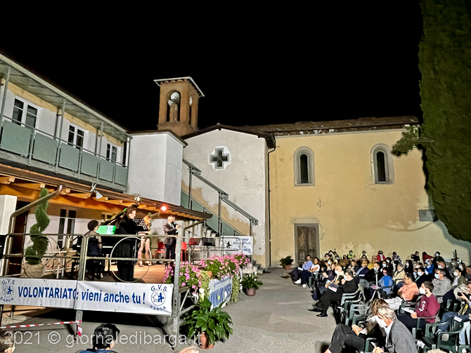BARGA – E’ riuscita davvero bene, con oltre 150 spettatori a gremire l’area esterna della chiesa del Sacro Cuore, la seconda edizione di “Giovani in Concerto per il G.V.S.”, evento svoltosi nella sera del 4 settembre scorso ed organizzato con tanta passione dalla cantante e docente del Liceo Musicale Passaglia di Lucca, Roberta Popolani che ha curato tutta la direzione artistica.
