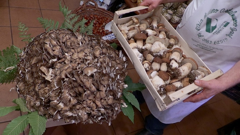 E’ piuttosto raro vedere un grifone di queste dimensioni che ha mantenuto la morbidezza e la tenerezza di tutte le sue ramificazioni ed è inutile chiedere a Piero dove sia stato raccolto. Si tratta della Grifola Frondosa e, nonostante la sua qualità organolettica sia decisamente inferiore al fungo porcino, è comunque molto ambita dai ricercatori e dai cultori della cucina tradizionale locale in quanto questo fungo si può cucinare in diversi modi.