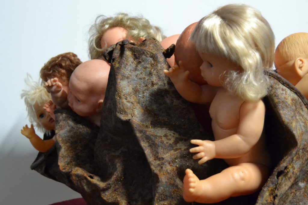 – Passeggiando sulle sponde del fiume Serchio – ci racconta Aldi – ho trovato un residuo metallico abbandonato; in origine probabilmente un comune bidone industriale. Le acque in piena, lo hanno trasportato per km, deformandolo ossidandolo ed incrostandolo. Il più del lavoro era stato eseguito dalla natura, io ho solo finito l’opera… Ho realizzato questa installazione – conclude Aldi – con lo scopo di promuovere i diritti dell’infanzia eliminando pregiudizi e stereotipi troppo spesso tipici del nostro mondo torpido e rugginoso…