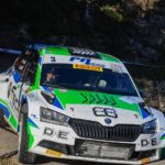 Altra Skoda Fabia R5 era affidata ad Alessandro Perico, ovviamente della sua struttura PA Racing, con Turati a fianco. Il pilota bergamasco, alla caccia del primo successo su queste strade, è stato anche lui in lizza per il vertice, in una lotta che, in alcune fasi, ha visto Ciuffi, Michelini e lo stesso Perico racchiusi in un solo secondo in testa alla classifica. Una sbavatura, materializzata in un testacoda, ha visto poi Perico scivolare indietro di oltre sette secondi, nella quinta delle sette prove in programma, rimanendo comunque terzo. Da questa lotta al vertice si autoescludeva quasi subito Paolo Andreucci, con Bimbi alle note, autore di una toccata nella seconda prova che costringeva la sua Skoda Fabia R5 HRacing al ritiro. Il lavoro del team all’assistenza permetteva al campione garfagnino di poter riprendere il via nella seconda tappa, per onorare una gara dove ha centrato tre volte la vittoria assoluta. Ritiro invece definitivo per Claudio De Cecco, con Campeis, non contento della sua Hyundai i20 R5 e poi attardato pesantemente da un testacoda, con difficoltà a ripartire della vettura. Completa un poker di Skoda in testa alla classifica la Fabia R5 Gima Autosport del reggiano Gianluca Tosi, con Del Barba, quarto a fine prima tappa, staccato di oltre 18 secondi.