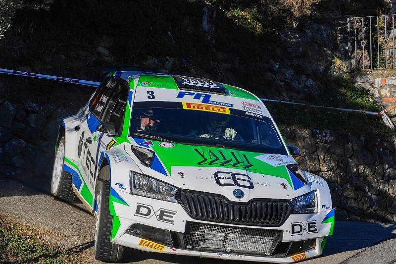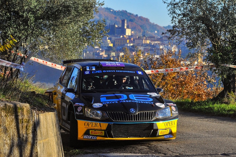 Altra Skoda Fabia R5 era affidata ad Alessandro Perico, ovviamente della sua struttura PA Racing, con Turati a fianco. Il pilota bergamasco, alla caccia del primo successo su queste strade, è stato anche lui in lizza per il vertice, in una lotta che, in alcune fasi, ha visto Ciuffi, Michelini e lo stesso Perico racchiusi in un solo secondo in testa alla classifica. Una sbavatura, materializzata in un testacoda, ha visto poi Perico scivolare indietro di oltre sette secondi, nella quinta delle sette prove in programma, rimanendo comunque terzo. Da questa lotta al vertice si autoescludeva quasi subito Paolo Andreucci, con Bimbi alle note, autore di una toccata nella seconda prova che costringeva la sua Skoda Fabia R5 HRacing al ritiro. Il lavoro del team all’assistenza permetteva al campione garfagnino di poter riprendere il via nella seconda tappa, per onorare una gara dove ha centrato tre volte la vittoria assoluta. Ritiro invece definitivo per Claudio De Cecco, con Campeis, non contento della sua Hyundai i20 R5 e poi attardato pesantemente da un testacoda, con difficoltà a ripartire della vettura. Completa un poker di Skoda in testa alla classifica la Fabia R5 Gima Autosport del reggiano Gianluca Tosi, con Del Barba, quarto a fine prima tappa, staccato di oltre 18 secondi.