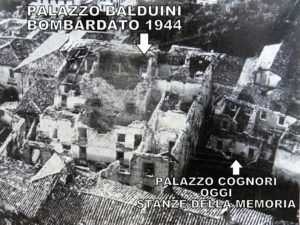 Il palazzo, seppur abbia ancora un bel sembiante, si deve dire che fosse molto più imponente prima della Seconda Guerra Mondiale. Infatti, fermatisi il fronte di quella guerra tra i nostri monti per ben sette mesi tra il 1944 e 1945, con Barga cannoneggiata quasi giornalmente, dopo che ci fu l’ultimo e vincente sussulto dell’Asse con la Battaglia di Sommocolonia del 26 dicembre 1944, nel successivo giorno 27, ecco sopraggiungere gli aerei dell’Usaf americana che bombardando Barga, Sommocolonia e oltre, sventrarono anche il palazzo Balduini (poi Tallinucci, Nardi e da questa famiglia donato alle Suore Giuseppine). Dopo il bombardamento fu recuperato a partire dal 1964 grazie al Genio Civile, il cui intervento fu deciso dal barghigiano Sergio Cardosi Carrara salito in quel frangente a Ingegnere Capo dello stesso Genio Civile Provinciale di Lucca. (18) e (19)