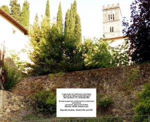 Il pensiero è così forte da averci estraniato per un poco dalla nostra passeggiata. Siamo però ancora seduti sul muro del bastoncello del SS. Crocifisso da cui abbiamo visto or ora Le Stanze della Memoria e Palazzo Balduini, ma da qui ora muoviamo per andare alla chiesa di San Felice.