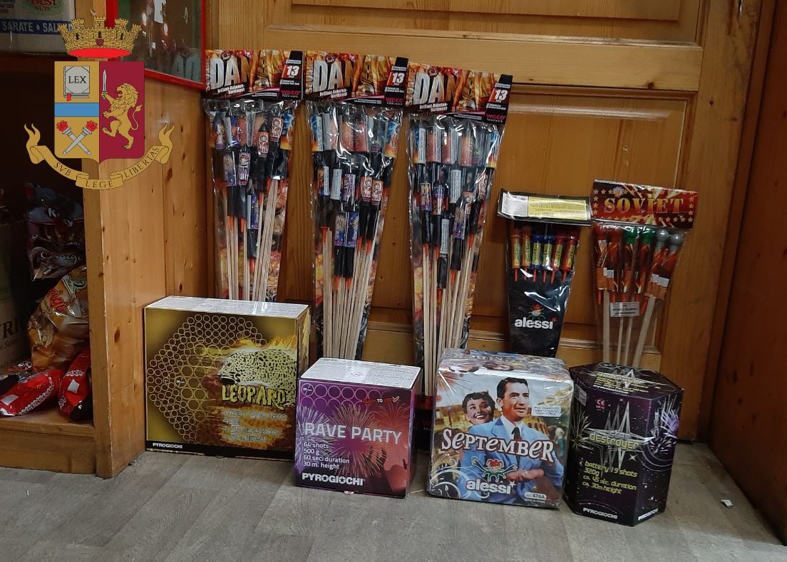Il controllo è stato effettuato nell’ambito dei servizi finalizzati alla prevenzione degli incidenti che sovente si verificano a capodanno a seguito dello scoppio di petardi e simili, a cui partecipano anche i Carabinieri, la Guardia di Finanza e le Polizia Locali.