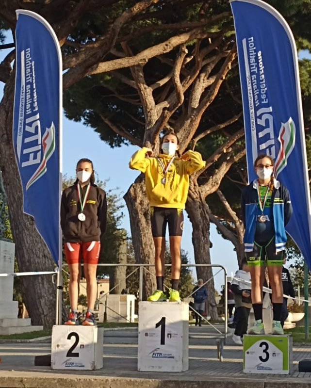 Sofia Giunta di Castelvecchio Pascoli, 13 anni, conquista l argento portando la Toscana sul secondo gradino del podio per la categoria ragazze (2009/2010), dopo una gara avvincente che l’ha vista tagliare il traguardo ad una manciata di secondi dalla prima classificata e lasciando dietro ben staccato il resto del gruppo. Ricordiamo che Sofia è tesserata per la squadra giovanile Livorno Triathlon ed è seguita dal tecnico responsabile Fasano, che fa parte anche dello staff per il triathlon giovanile Italiano; per la maggior parte della settimana, vista la distanza da Livorno, si allena a Barga, seguita dal Gruppo Marciatori per quanto riguarda la parte atletica, dal Garfagnana nuoto per quanto riguarda la parte di nuoto e dal Garfagnana mtb per la bicicletta.
