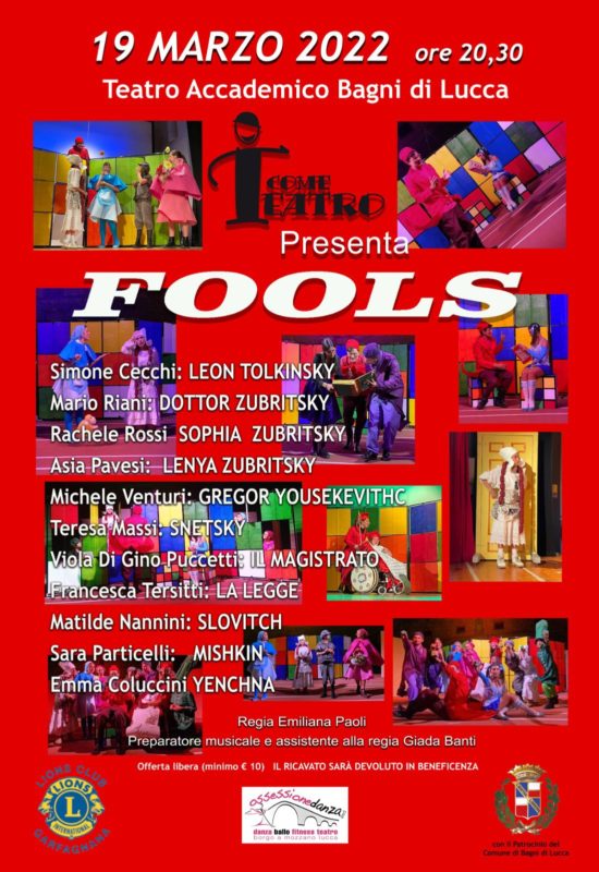 BAGNI DI LUCCA – Grazie al supporto fondamentale del Lions Club Garfagnana la compagnia teatrale di Ossessione danza di Borgo a Mozzano il prossimo 19 marzo alle 20,30, al teatro Accademico di Bagni di Lucca, porta inscena lo spettacolo “Fools”.