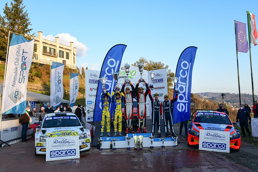 IL CIOCCO – Il varesotto Andrea Crugnola, in coppia con Pietro Ometto, con la Citroen C3 Rally2 FPF Sport, gommata Pirelli, hanno vinto, dominando dalla prima all’ultima prova speciale, il 45° rally Il Ciocco e Valle del Serchio, prova di apertura del Campionato Italiano Assoluto Rally Sparco. Una vittoria netta e autorevole, con nove speciali vinte sulle dodici totali, maturata già nella prima frazione di venerdì e confermata nella lunga tappa di sabato, che propone Crugnola tra i candidati di peso al titolo tricolore 2022, anche se è lo stesso pilota a moderare gli entusiasmi. “Sicuramente ogni vittoria è importante – spiega all’arrivo il campione italiano rally 2020, titolo conquistato proprio con quella Citroen C3 ritrovata quest’anno – e devo dire che sono contento di avere recuperato subito il feeling con la macchina, che mi ha permesso di andare forte fin dalla prima speciale. Realisticamente però dobbiamo anche essere consapevoli che tanti dei nostri avversari qui al Ciocco non erano ancora al massimo del potenziale, vuoi per cambi di vettura o per poco affiatamento con macchine nuove. Direi che nelle prossime gare si vedranno battaglie più serrate al vertice”. Intanto Crugnola si gode lo spumante del primo sul podio, come accaduto già nel rally Il Ciocco 2020. A circa trentuno secondi dal vincitore, chiude al secondo posto un ottimo rally Il Ciocco l’altro varesotto Damiano De Tommaso, con Giorgia Ascalone alle note e la Skoda Fabia Evo Rally2 Delta Rally. Impegnato a conoscere la nuova vettura, De Tommaso non ha cercato di ingaggiare lotta con l’imprendibile Crugnola, ma piuttosto a conservare una posizione d’onore che, alla vigilia, neppure immaginava. E con la soddisfazione di avere siglato anche una prova speciale. Ancora una rimonta fino al podio per il veneto Giandomenico Basso, Lorenzo Granai e la Hyundai i20N Rally2 Friulmotor, come già al rally Il Ciocco dello scorso anno. Il campione italiano rally in carica ha superato, nel corso della gara, le difficoltà di affiatamento con la macchina per lui totalmente nuova, per acquisire via via un passo più sicuro, fino a vincere l’ultima prova speciale e a scavalcare, nel finale, Albertini. Il bresciano Stefano Albertini, con Fappani, aveva trovato le stesse difficoltà per trovare il feeling con un assetto sempre troppo morbido della sua Skoda Fabia Evo Rally2 PA Racing. Il quarto posto non lo soddisfa in pieno, in una gara come il Ciocco, che gli piace molto e dove lo scorso anno aveva battagliato a viso aperto contro il pilota ufficiale del Mondiale Rally Thierry Neuville. Ancora una buona prestazione, invece, sulle strade amiche di una gara che considera di casa per il lucchese Rudy Michelini, con Michele Perna, costantemente, salvo sporadiche occasioni, nel quintetto di testa, con tempi anche da podio, con la Volkswagen Polo R Rally2 HK Racing, con la quale coglie un quinto assoluto importante. Un po’ indietro in classifica le due Skoda Fabia Evo di Giacomo Scattolon e Fabio Andolfi. Sesto alle fine il pavese Giacomo Scattolon, con Bernacchini alle note, con la Fabia Erreffe, che ha chiuso il programma pochi giorni prima del via, mandando quindi il tempo per acquisire la giusta confidenza con la vettura, per lui nuova nella versione Evo. Un po’ la stessa motivazione che ha tenuto il ligure Fabio Andolfi, con Fenoli e la Fabia Munaretto, nelle immediate retrovie, anche per un problema al cambio nelle prime fasi di gara, con un settimo posto che migliorerà presto, già dai prossimi appuntamenti. Anche il fiorentino Tommaso Ciuffi, con Gonella, si aspettava di più dal debutto con la Skoda Fabia Evo di PA Racing, con la quale invece non ha trovato il giusto feeling per poter spingere a fondo. Per lui la magra consolazione della vittoria in uno dei passaggi sulla “corta” Il Ciocco e la voglia di dimostrare, già dalla prossima gara, il suo valore. Una grande prima parte di questo rally Il Ciocco ha proiettato il reggiano Gianluca Tosi, con Del Barba e la loro Skoda Fabia Evo Gima Autosport a ridosso del podio, posizione mantenuta fino a metà gara circa, prima di arretrare fino al nono posto. Notazione particolare per questo rally Il Ciocco: in una gara di solito molto selettiva, nella edizione 2022, favorita da condizioni meteo senza pioggia o nebbia, nessuno dei grandi protagonisti è incappato in un ritiro. “Ancora una volta è stato il rally Il Ciocco e Valle del Serchio a dare le prime, importanti indicazioni sul Campionato Italiano Assoluto Rally – commenta alla fine uno stanco ma felice Valerio Barsella, dalla consolle di comando della gara – e, come sempre, lo staff di O.S.E. ha lavorato al massimo per offrire un evento di alto livello. Un grande aiuto ci viene dalla qualità dei percorsi delle speciali, dalla bellezza di questi territori tra Media Valle e Garfagnana e dalla fattiva collaborazione dei Comuni, importantissima per poter realizzare un grande spettacolo di sport”.