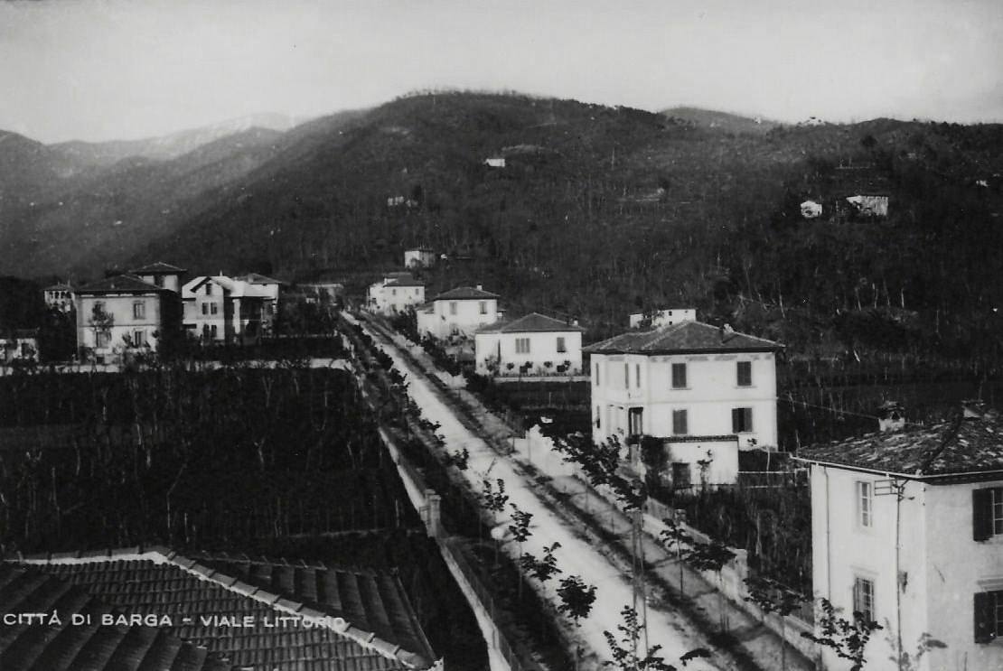 Parlato della scuola superiore, ora l’occhio è preso sulla destra dalla visione del viale Cesare Biondi, volgo di Canteo, voluto l’anno 1925 dall’amministrazione del sindaco di Barga Morando Stefani. Prima del viale c’era una strada ma non lì, bensì scendendo la discesa che ci porta a uscire da ciò che resta del cancello del plesso scolastico superiore, e allora, virtualmente andando avanti a dritto c’era una più piccola strada oggi sparita, la vecchia via Carraia. Questa era la parallela dell’ancora esistente via del Giardino che dall’albergo la Pergola arriva al Cancellone, ma oggi della via Carraia, di questa vecchia strada non resta più traccia, perché, quando si fece il viale, allora detto Littorio, fu alienata è così incorporata nel retro di giardini di villini che pian piano si andarono costruendo sul nuovo e bel viale.