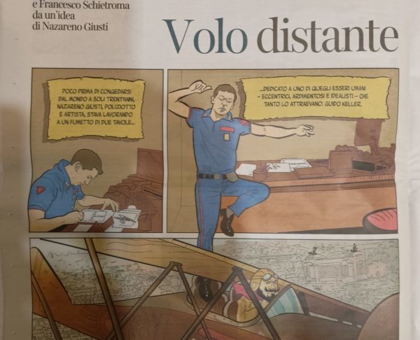 Domenica 13 marzo il Corriere della Sera, tramite il settimanale La Lettura – con il quale Nazareno aveva collaborato più volte – gli ha dedicato 2 pagine con il graphic novel “Volo Distante” di Giuseppe Pollicelli e Francesco Schietroma. E Nazareno è diventato protagonista e autore di una breve storia sull’eccentrico aviatore Guido Keller, personaggio sul quale stava lavorando prima di interrompere la sua esistenza terrena.