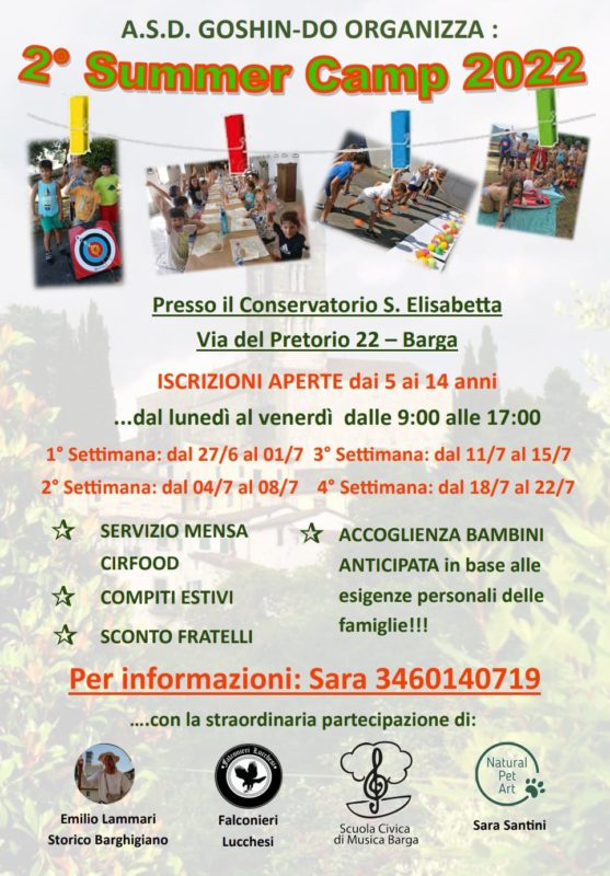 Il camp verrà realizzato dall’ultima settimana di giugno fino alle prime tre settimane di luglio a Barga presso il conservatorio S. Elisabetta in via del Pretorio 22.