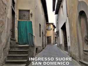 Per capire cosa fosse il convento di San Domenico, va detto che in questo luogo religioso si ospitavano delle suore del Terz’ordine dedite al culto di Santa Caterina da Siena (1). Queste suore oblate (senza voti), come dall’immagine, avevano l’accesso al loro convento sulla via del Pretorio che sale al Duomo, poco dopo l’ingresso a Porta Reale. Questo era corredato anche da una chiesetta che, essendo stata censita da Merrighi nel suo Campione, pensiamo che avesse un pubblico ruolo. Oggi, salva la localizzazione, non esiste più memoria di come fosse il loro convento e, soprattutto, dove fosse stata la chiesetta, comunque a questa data 1779 le suore erano ancora efficienti e queste svolgevano anche le funzioni d’istruttrici, cioè avevano delle scuole. Da qui a pochi anni, quando nel Granducato di Toscana presero avvio i Conservatori per l’istruzione, inizialmente a Barga fu pensato di ubicarlo qui, sennonché venendo in visita alla stessa Barga il Granduca di Toscana, era il 1786, quando vide il monastero di Santa Elisabetta, seduta stante decise che lì, per la bellezza, grandezza e comodità, era il luogo idoneo per porvi la nuova idea d’istruzione. La cosa prese reale corpo nel settembre del 1788, quando le suore oblate di San Domenico, per volontà granducale, furono ospitate al monastero di Santa Elisabetta e il loro convento alienato.